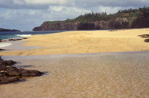 I'll throw in a shot of a cardinal that joined us on the beach at Ke'e. My last shot from Kaua'i on this trip is of yet another beach--I think this one is Lumahai, between Ke'e and Hanalei, used for the movie of South Pacific: