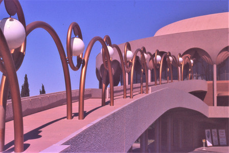 After leaving Gloria's aunt's, our first stop was close by, on the Arizona State University campus, for a look at one of Frank Lloyd Wright's last projects, Gammage Auditorium (completed 1964). In the first photo below you see Gloria and Max, backs toward us.