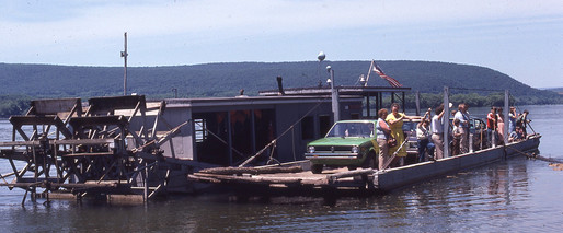 We took an excursion up the Susquehanna River to a little town called Millersburg, where there was an operating sternwheel paddleboat ferry. (I don't know about 1979, but today it's the last ferry on the Susquehanna in operation, and the last such boat in use anywhere.) The following shots show a wider view of the river valley, then the ferry approaching our side of the river: