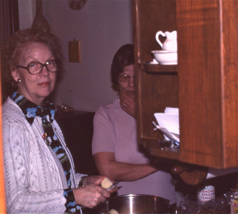 And here is Mom, probably preparing mashed potatoes, with Dottie's mother, whose face is unfortunately partly blocked. Then, a photo of Dottie and Ellen in Dottie and Jim's new house in North Royalton (another Cleveland suburb):